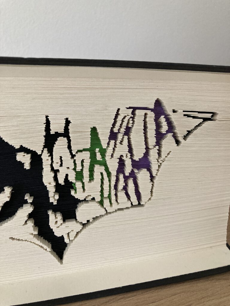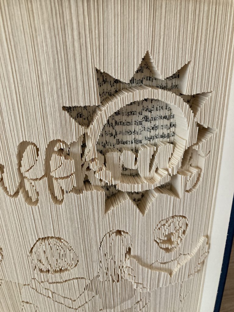 Jede Seite wird einzeln geschnitten und gefaltet – mit Geduld, Erfahrung und einem hohen Anspruch an Details.